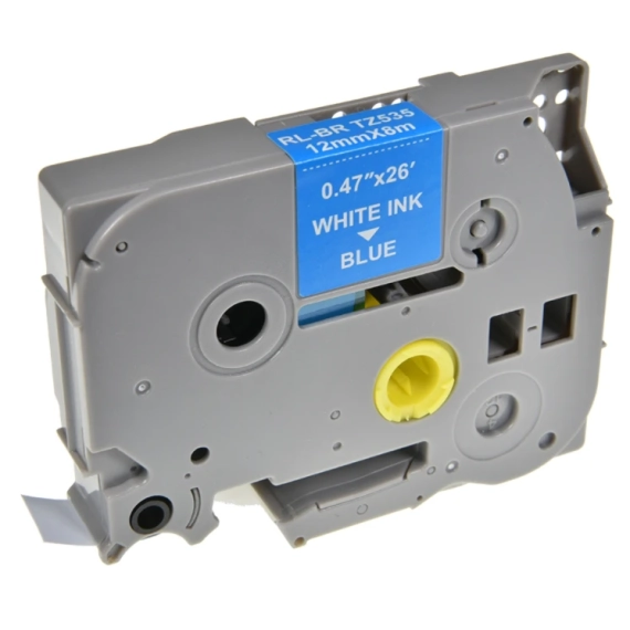 Yaha TZE-535 P-Touch Tape Hvit på Blå 12mm (8m), erstatter Brother TZE-535