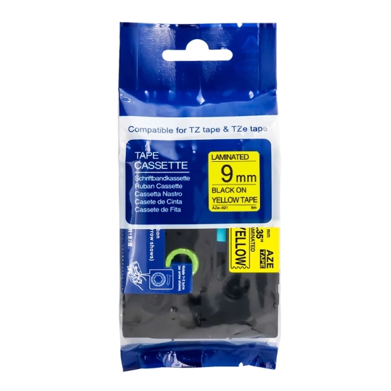 Yaha TZE-621 P-Touch Tape Sort på Gul 9mm (8m), erstatter Brother TZE-621