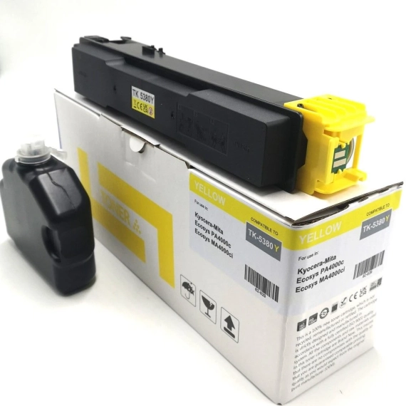 Finn Yaha Toner Gul (10.000 sider), erstatter Kyocera TK-5380Y for Ecosys MA 4000 cifx/cix & PA 4000 cx. Utskrifter i toppkvalitet. Se hele serien på vår nettside.