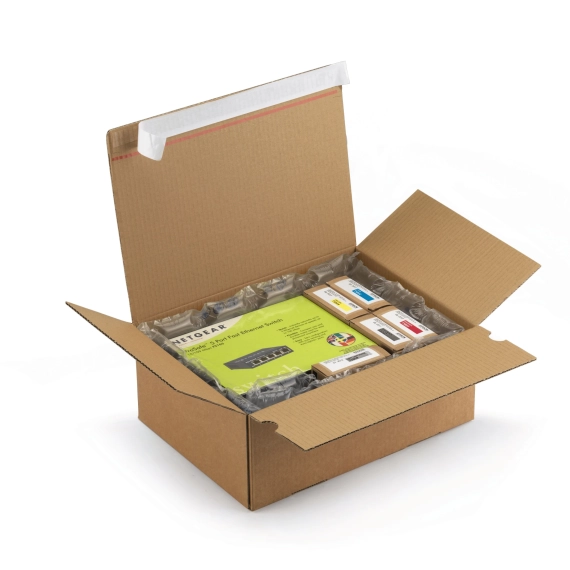 Når esken lander i postkassen hos dine kunder kan de lett åpne den ved hjelp av den perforerte rivestripen.