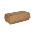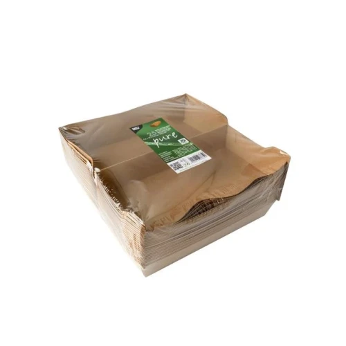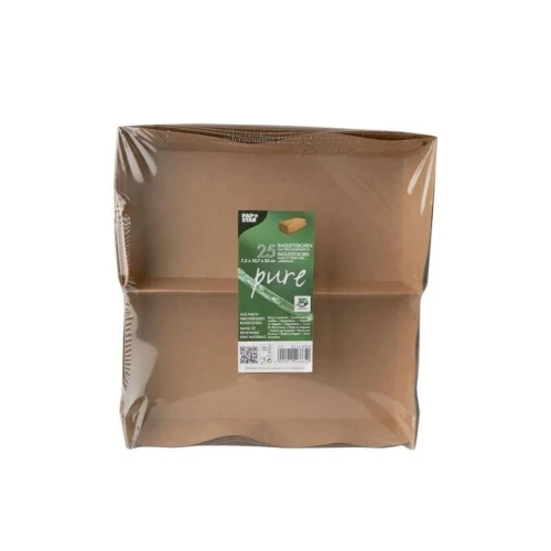 Baguetteboks med praktisk, sammenleggbart lokk. Miljøvennlig boks fra den innovative og bærekraftige emballasjeserien '100% Pure'. Ideell for cateringselskaper eller restauranter med miljøbevissthet. Laget av fornybare råvarer, fullstendig biologisk nedbrytbare. - Mål: 10,5x22cm - Høyde: 7,5 cm - Materiale: Ubleket FSC®-sertifisert ferskfiberplate med organisk belegg - Farge: Brun, innvendig og utvendig - Pakke med 50 stk.