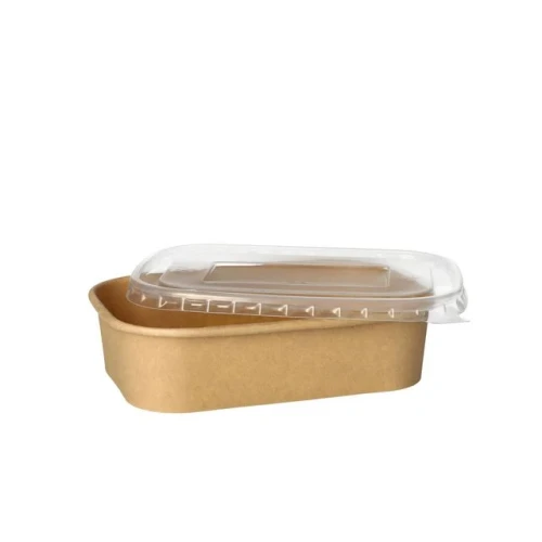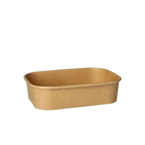 Praktiske matbeger for varmmat og salater. - Produsert i kartong med bio-belegg. - Volum: 500 ml - Mål: (LXBXH) 17,3x12,3x4,1cm. - Farge: brun. - Tåler varmt fyll (100 grader) i inntil 15min, oppvarming ved max 70 °C i 2 timer. - Lokk kan kjøpes separat.