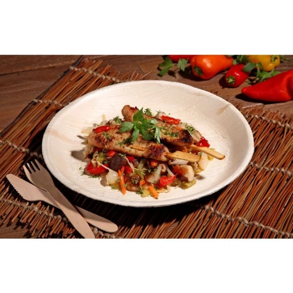 Miljøvennlige solid engangtallerken produsert av palmeblad. En flott løsning for miljøbevisste kunder.