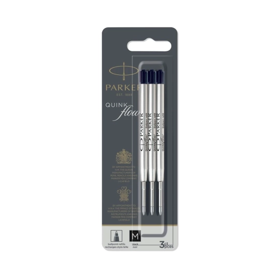 Autentiske Parker blekkpatroner designet for Parker kulepenner, Parker QUINKflow-blekk gir jevn skriving på papir. Vakkert pigmentert dypsvart blekk fanger tankene dine, Medium spiss for daglig skriving.