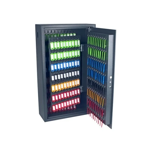Trygg og effektiv nøkkeloppbevaring for opptil 300 nøkler - perfekt for sikkerhetsfokuserte miljøer. PAVO nøkkelskap med kapasitet til 300 nøkler er ideelt for miljøer med høye sikkerhetskrav. Skapet har en slitesterk metallkonstruksjon og en forsterket elektronisk låsemekanisme som gir optimal beskyttelse for dine nøkler. Passer perfekt for større bedrifter, hoteller og institusjoner. - Kapasitet: 300 nøkler - Elektronisk lås for økt sikkerhet - Robust metallkonstruksjon - Mål: 650x150x380mm - Farge: Mørkegrå