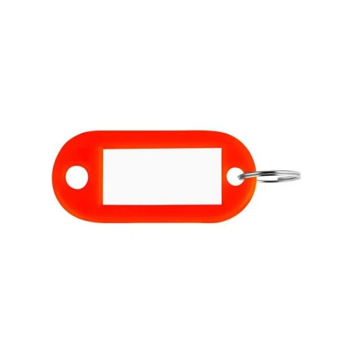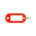 Nøkkelskilt, Pavo® plastskilt med liten nøkkelring. Med hvite etiketter som kan skiftes ut. Nøkkelskilt gjør det enkelt å identifisere riktig nøkkel. - Røde skilt - Mål (HxB): 3,4x4,1 cm