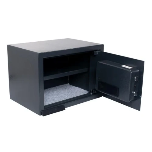 Beskytt verdisakene dine med Sikkerhetsskap PAVO – en kompakt safe med elektronisk kodelås. Perfekt til hjemmet, kontoret eller hybelen. Den solide stålkonstruksjonen og mulighet for vegg- eller gulvmontering gir ekstra trygghet. Skulle du glemme koden, følger det med to nødnøkler som backup. Enkel i bruk og ideell for kontanter, pass, smykker eller små elektroniske enheter. - Sikkerhetsskap perfekt til mindre verdisaker - Elektronisk kodelås med enkel betjening - Kapasitet: 16l - Inkluderer 2 nødnøkler - Klargjort for vegg- eller gulvmontering (fester medfølger) - Krever 4 x AA-batterier (medfølger ikke)