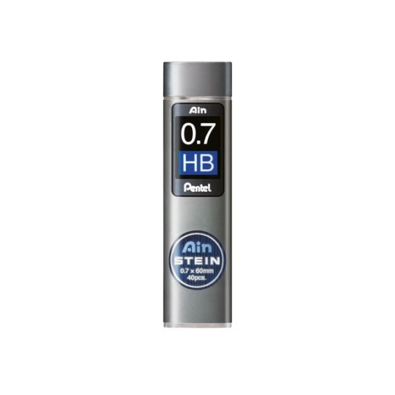 Ain Stein er PENTEL sitt sterkeste serie blyminer til trykkblyanter. Etuiet inneholder 40 miner. Blyantminen er fremstilt av hele 92 % resirkulerte materialer. Bak det uskyldige ytre gjemmer det seg en imponerende produktoptimalisering og en høyteknologisk fremstillingsmetode med inspirasjon fra naturen: Med en tett, sekskantet struktur, samme form som en bikube, og en keramisk ramme som holder minene fast innenfra, er Ain Stein-minene både ultrastabile og fleksible. - Bredde: 0,5 mm - Hardhet: HB