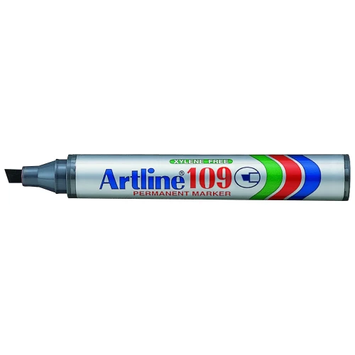 Permanent merkepenn med 2,0-4,0 mm skrå spiss. Hurtigtørkende, vannavstøtende, plasthylse, kork med klips, alkoholbasert permanent blekk uten Xylene.