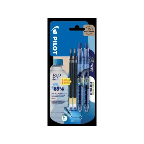 Geleroller PILOT B2P 07 2+2rf blå 2 penner med 2 refill blå - Blister med 2 x B2P Gel - Strekbredde: 0,7 - Farge: blå
