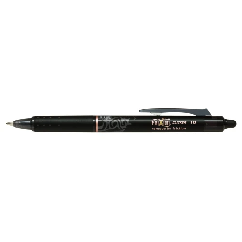 Du kan enkelt fjerne og korrigere feil med gelpennen Pilot FriXion Clicker 10, som har den unike FriXion-visketuppen og varmesensitivt blekk.