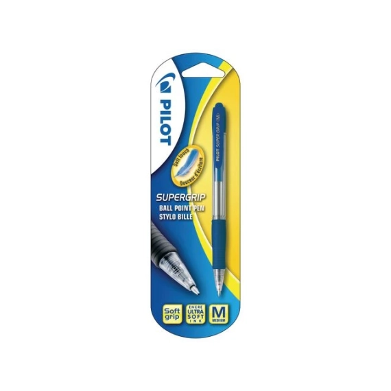 Pilot Super Grip bruker oljebasert blekk med enestående flyt. Den har en middels 1,0 mm spiss som gir en jevn skriveopplevelse, og den er perfekt for hverdagsjobber på kontoret eller hjemme. Pilot Super Grip-pennen har en kule av wolframkarbid som beholder formen og er svært slitesterk, noe som gjør den til en flott penn for langvarige prosjekter. Denne kulepennen har en etterfyllbar patron som bidrar til mindre avfall og større besparelser. Pennen har en behagelig avrundet kropp, et gummigrep og en praktisk lommeklips.