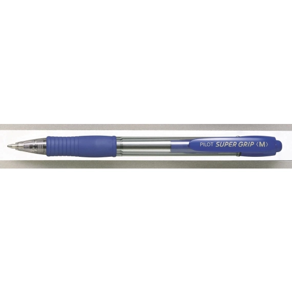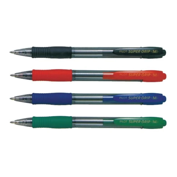 Pilot Super Grip-kulepenn med inntrekkbar spiss har et sklisikkert gummigrep og en gjennomsiktig blekkholder som viser blekknivået.