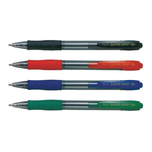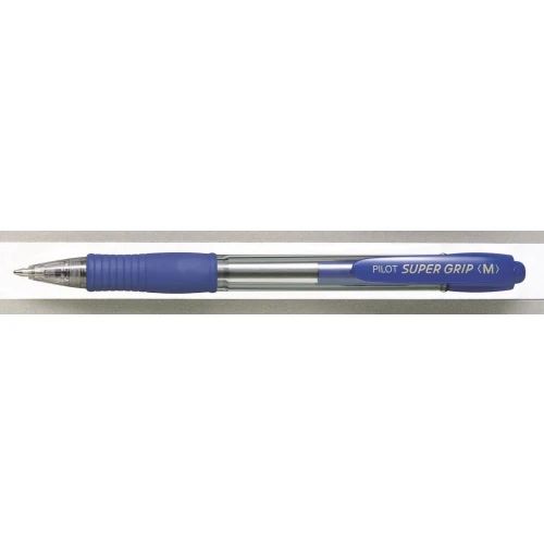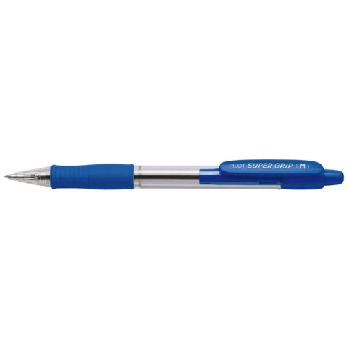 Pilot Super Grip-kulepenn med inntrekkbar spiss har et sklisikkert gummigrep og en gjennomsiktig blekkholder som viser blekknivået.