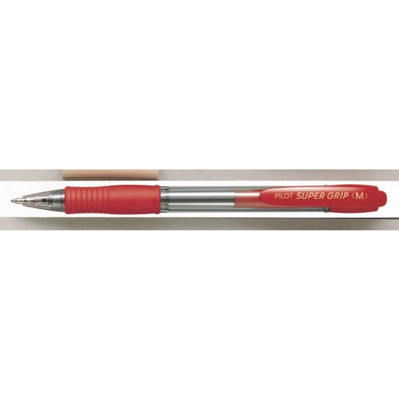 Pilot Super Grip-kulepenn med inntrekkbar spiss har et sklisikkert gummigrep og en gjennomsiktig blekkholder som viser blekknivået.