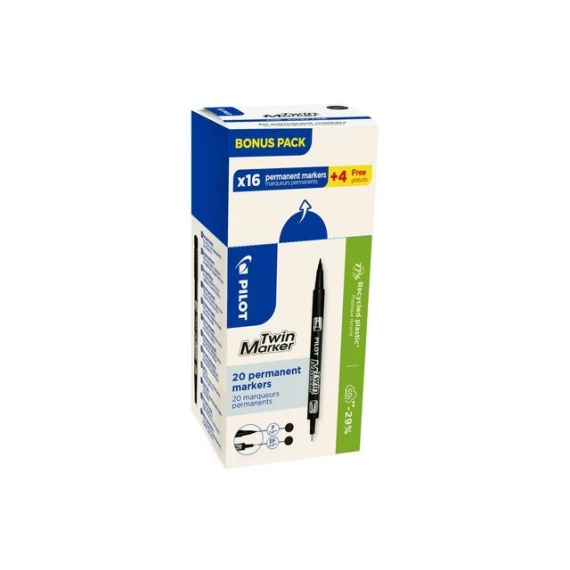 To streker i én penn – for allsidige behov. Twin Marker fra PILOT gir deg to strekbredder i én penn – 0,4 mm for presisjonsarbeid og 0,8 mm for tydelig markering. Denne merkepennen er velegnet til skriving på ulike overflater som plast, metall, glass og foto. Slitesterke spisser av polyester og akryl sikrer en jevn skriveopplevelse, perfekt til både profesjonell bruk og hverdagsoppgaver. - To ulike strekbredder: 0,4 mm for finere detaljer, 0,8 mm for større markeringer - Skriver på plast, metall, glass og foto for allsidig bruk - Slitesterk konstruksjon med spiss i polyester og akryl