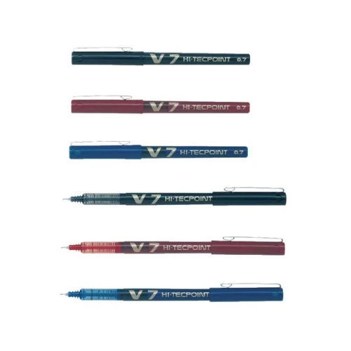 Pilot Hi-Tecpoint V7-pennen er en kulepenn med middels spiss med en blekkregulator som sikrer jevn blekkflyt