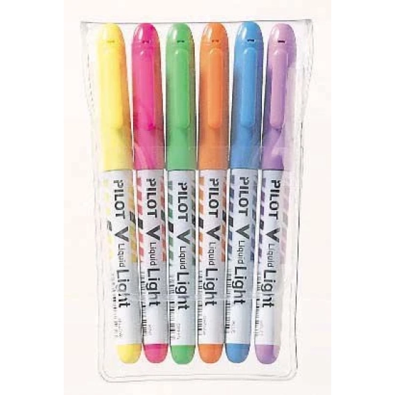 Pilot Spotliter V Liquid Light merketusj bruker en skråskåret spiss som lager en 3,3 mm strekbredde, ideelt for oppgaver som krever en kraftig og sikker stil. Merketusjen kan blant annet brukes til understreking, merking, skriving og retting. Blekkvinduene på kroppen viser hvor mye blekk som er igjen, slik at du kan se når det begynner å bli tomt. Pigmentblekket gir skarpe, klare farger, slik at uthevingen og understrekingen vises tydelig. Merketusjen leveres med en hette og lommeklips som gjør den ideell å ta med seg på farten.
