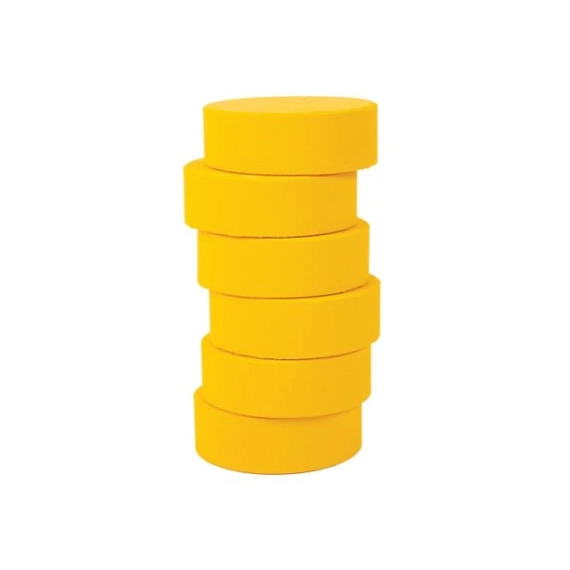 Fargeblokker i varm gul farge. Fargeblokker i varm gul farge. Nydelig å male med, veldig løselig og lett å blande. Vi anbefaler vår fargeblokkpalett til. - Antall: 6 stk - Mål: Ø 5,5 - 5,7c, - Tykkelse: 1,9cm - Materiale: Vannfarge - Farge: Varmgul