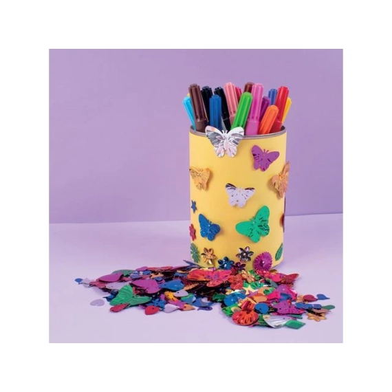 Paljetter med mange ulike motiver og i et stort utvalg av farger. Bruk paljettene til håndverk eller pynt – fest på postkort, pakker, tegninger eller pynt bord på fest. - Mål: Ø 10-40mm - Farge: Blå, Sølv, Gull, Rød, Cerise, Grønn - Materiale: PET