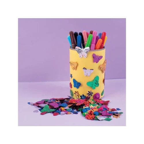 Paljetter med mange ulike motiver og i et stort utvalg av farger. Bruk paljettene til håndverk eller pynt – fest på postkort, pakker, tegninger eller pynt bord på fest. - Mål: Ø 10-40mm - Farge: Blå, Sølv, Gull, Rød, Cerise, Grønn - Materiale: PET