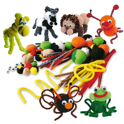 Inneholder pom-pom baller, piperensere og øyne for 24 dyr. Beskrivelse medfølger. Lim inngår ikke.
