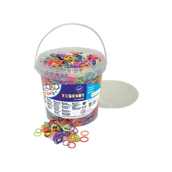 Fancy hemper, eller vevbånd i mange herlige farger. Gummibåndene kan fremfor alt brukes til fremstilling av fine armbånd eller hvorfor ikke som hårbånd. Den praktiske bøtta forenkler oppbevaring. - Flere bruksområder: - Fine armbånd - Flotte hårstrikker - -