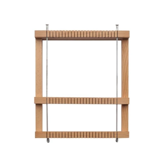 Vevramme tre med nål Veveramme laget av tre i stabil konstruksjon. Ta gjerne en titt på våre håndverkstips, som gir informasjon og gode råd for å komme i gang med veving. En nål medfølger. - Innhold: - Vevnål 200mm - Vevramme - Mål: 200x190 x30mm - Farge: Natur - Materiale: Tre