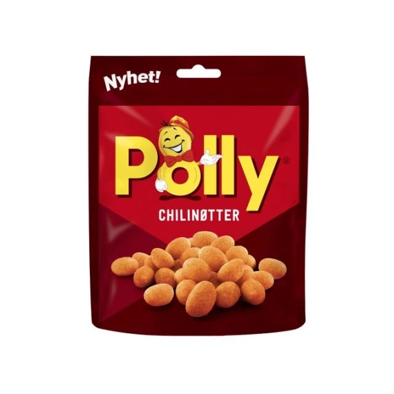 Polly Chilinøtter er sprø, innbakte Polly peanøtter med et smakfullt chilikrydder. Chilicoatede peanøtter av beste kvalitet er en perfekt snacks når du skal kose deg. Chilinøtter er et klassisk tilbehør til godt drikke. - Allergener: Nøtter (peanøtter)