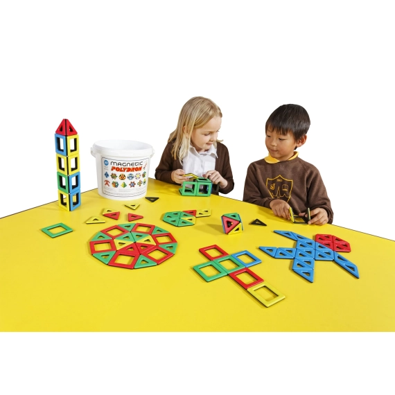 En flott måte for barna å utforske en verden av fasonger og magnetisme på – dette polydronsettet er laget av ABS-plast og leveres i sett på 96 deler i assorterte farger og ulike størrelser. Denne byggeleken kombinerer moro med læring og lar barna eksperimentere med å bygge ulike modeller ved å sette sammen delene med riktig polaritet. Polydronsettet er en tidløs aktivitet for barna og leveres med en praktisk bøtte for enkel oppbevaring.