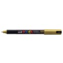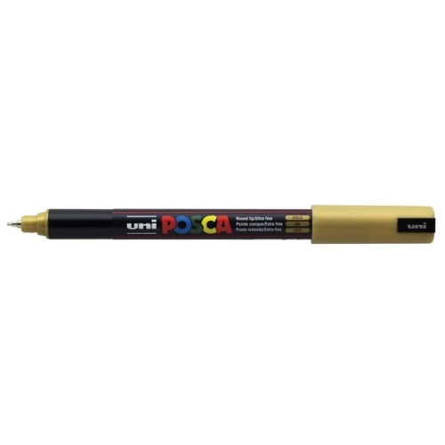 Vannbasert permanent malingsmerkepenn. Skriver på papir, kort, metall, glass, stoff og de fleste andre overflater.Strektykkelse: 0,7 mm Rist pennen (kulene på innsiden skal høres), og trykk spissen mot en prøvebit til blekket begynner å komme. Slipp opp trykket for å unngå oversvømmelse. Farge: gull.