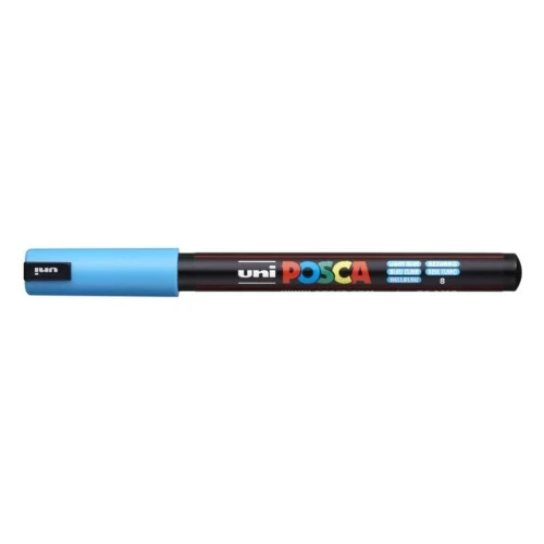 Vannbasert permanent malingsmerkepenn. Skriver på papir, kort, metall, glass, stoff og de fleste andre overflater. Strekbredde: 0,7 mm. Rist pennen (kulene på innsiden skal høres), og trykk spissen mot en prøvebit til blekket begynner å komme. Slipp opp trykket for å unngå oversvømmelse. - Strekbredde: 0,7 mm - Farge: lys blå.