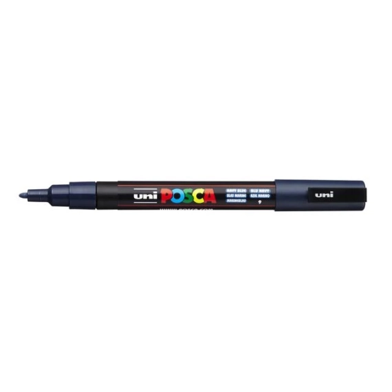 Vannbasert permanent malingsmerkepenn.Skriver på papir, kort, metall, glass, stoff og de fleste andre overflater. Blekket trekker ikke gjennom papiret Strekbredde: 0,9-1,3mm spiss Rist pennen (kulene på innsiden skal høres), og trykk spissen mot en prøvebit til blekket begynner å komme. Slipp opp trykket for å unngå oversvømmelse. Farge: marineblå.
