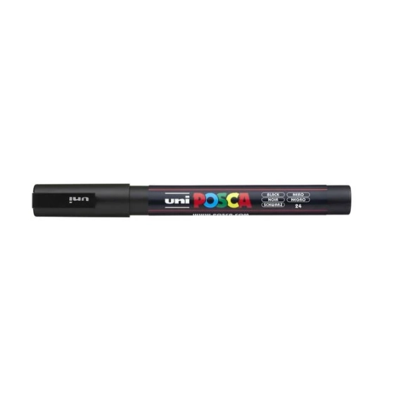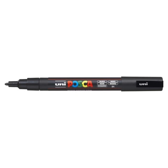 Vannbasert permanent malingsmerkepenn. Skriver på papir, kort, metall, glass, stoff og de fleste andre overflater.Skriver på papir, kort, metall, glass, stoff og de fleste andre overflater.Strekbredde: 0,9-1,3 mm Rist pennen (kulene på innsiden skal høres), og trykk spissen mot en prøvebit til blekket begynner å komme. Slipp opp trykket for å unngå oversvømmelse. Farge: sort.