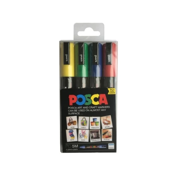 Vannbasert permanent malingsmerkepenn. Skriver på papir, kort, metall, glass, stoff og de fleste andre overflater. Blekket trekker ikke gjennom papiret. - 1,8-2,5mm spiss - Rist pennen (kulene på innsiden skal høres), og trykk spissen mot en prøvebit til blekket begynner å komme. - Slipp opp trykket for å unngå oversvømmelse. - Inneholder fargene: blå, grønn, rød og gul.