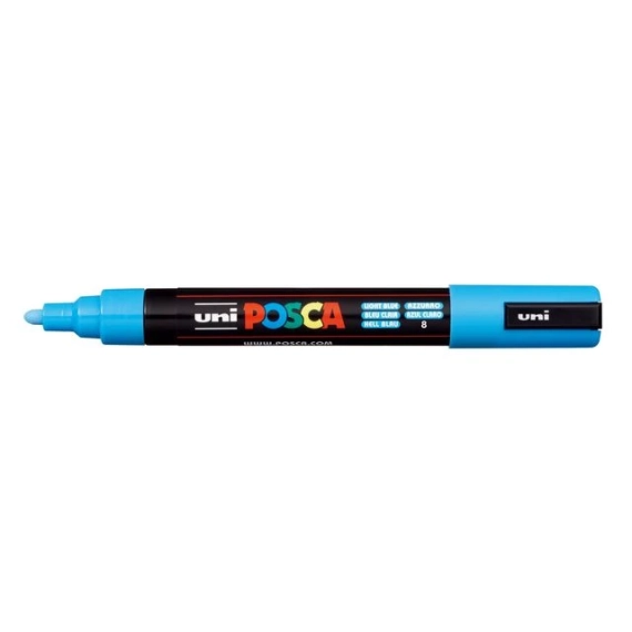 Vannbasert permanent malingsmerkepenn. Skriver på papir, kort, metall, glass, stoff og de fleste andre overflater.Skriver på papir, kort, metall, glass, stoff og de fleste andre overflater.Strekbredde: 2,5 mm Rist pennen (kulene på innsiden skal høres), og trykk spissen mot en prøvebit til blekket begynner å komme. Slipp opp trykket for å unngå oversvømmelse. Farge: lys blå.
