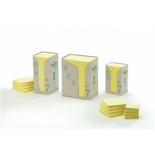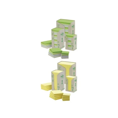Resirkulerte Post-it blokker hjelper deg å gjøre noe positivt for miljøet. Tårn med blokker for enklere lagring og mindre emballasje.