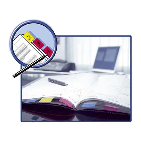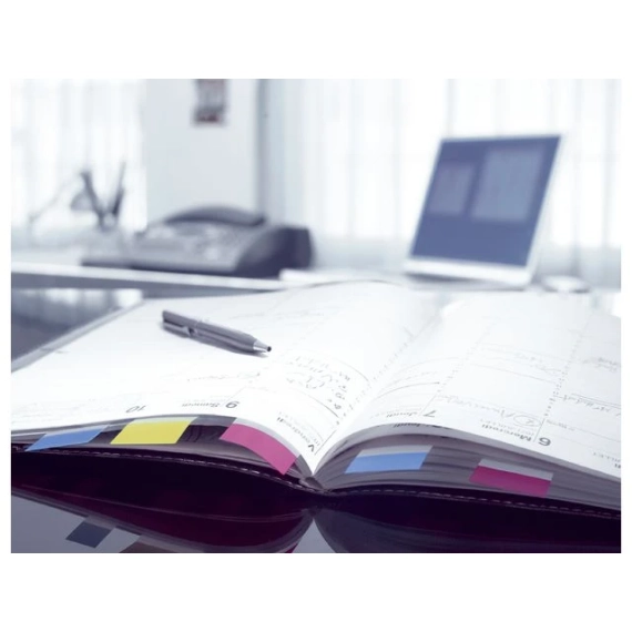 Post-it®-indeksmarkører er en praktisk løsning for en rekke oppgaver på kontoret eller i hjemmet. Du kan blant annet merke av viktige sider i store rapporter eller merke av bestemte oppskrifter i kokebøker. Disse middels store Post-it®-markørene er nyttige hvis du trenger å merke av noe til senere. De er store nok til at du kan skrive en overskrift på dem, og den gjennomsiktige delen dekker ikke over tekst eller bilder på siden. De leveres i en hendig plastdispenser og er et nyttig hjelpemiddel når du skal fargekode viktige dokumenter, kataloger eller mapper til senere bruk.