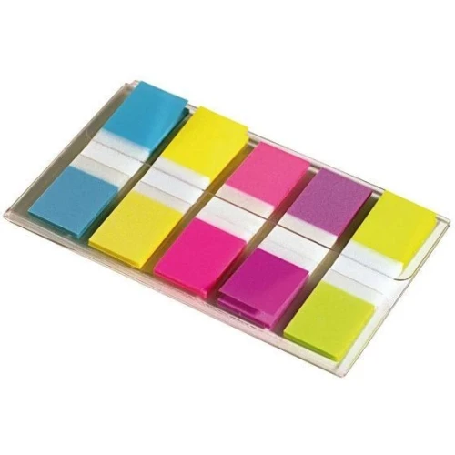 Post-it®-indeksmarkører er en praktisk løsning for en rekke oppgaver på kontoret eller i hjemmet. Du kan blant annet merke av viktige sider i store rapporter eller merke av bestemte oppskrifter i kokebøker. Disse små Post-it®-markørene er nyttige hvis du trenger å merke av noe til senere. Denne pakken leveres i en rekke sterke farger, og de er store nok til at du kan skrive overskrifter på dem. Den gjennomsiktige delen som festes til siden, dekker ikke over tekst eller bilder på siden. De leveres i et hendig plastomslag og er et nyttig hjelpemiddel når du skal fargekode viktige dokumenter, kataloger eller mapper til senere bruk.