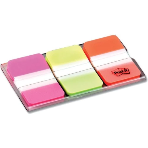 Små Post-it®-faner har en rekke bruksområder. Du kan blant annet arkivere viktige dokumenter eller organisere innholdet i permer inn i oversiktlige inndelinger. Disse solide markørene i små størrelser gjør det enklere å få oversikt når du vil merke av inndelinger til senere eller atskille mappene dine. Den gjennomsiktige delen dekker ikke til teksten. Denne praktiske pakken leveres i en rekke sterke farger, og de er store nok til at du kan skrive en liten overskrift på dem. Du kan feste Post-it®-faner i notatbøker, rapporter eller ukeblader. De leveres i en hendig dispenser og er et nyttig hjelpemiddel når du skal fargekode viktige dokumenter til senere bruk.