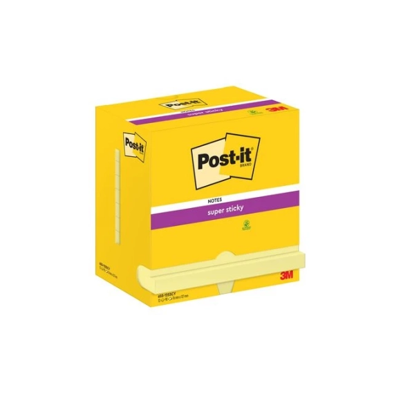 Post-it Super Sticky Notes har sterkere feste og varer lenger. De har dobbel så sterk klebeevne sammenlignet med de originale Post-it Notes, slik at du kan være helt sikker på at beskjeden din kommer frem. Disse selvklebende lappene er perfekte for vertikale overflater og overflater det er vanskelig å feste ting på, de gjør det mulig for deg å skrive ned tankene dine i en fei, og de er ideelle når du er på telefonen eller har hendene fulle. 60% av limet er fra en fornybar kilde og innpakningen er laget av resirkulert kartong og kan brukes til praktisk oppbevaring av klebelappene i skrivebordet eller skapet.