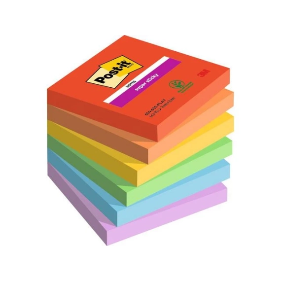 Post-it® Super Sticky Notes har dobbelt så sterk klebeevne sammenlignet med de originale Post-it® Notes. De er supersterke, ekstremt allsidige og fås i en rekke myke, lyse og levende farger, slik at hver beskjed du legger igjen skiller seg ut.