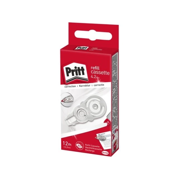 Denne påfyllingskassetten lar deg raskt og enkelt fylle på Pritt påfyllbar Flex Roller-korrekturteipen.