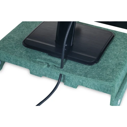 A monitor stand for good posture while you work. Recycled material: the Q-Riser 110 is produced using recycled material made from plastic bottles. Cable management: cable guide for your monitor's cables. 100% circular: from cradle to cradle An optimum monitor position leads to lesser discomfort and complaints to the neck (Kumar 1994 McKinnon 1994, Marcus 2002). Positioning the monitor to low can lead to strong bending of the neck and therefore higher muscle tension of the neck muscles. But a position which is too high (higher than eye level) can also lead to problems. The optimum position increases the productivity by 10% (Sommerich et al, 1998). We advise having a screen that can easily be adjusted and tilted so that every user can adjust its height.