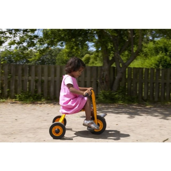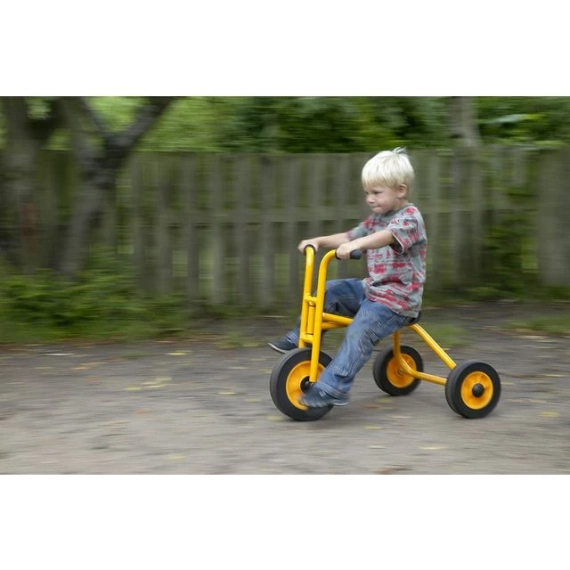 Rabo trehjulssykkel Liten 1 er en klassiker fra Rabo og har lenge vært populær blant både barn og voksne i barnepass. Trehjulingen er egnet for barn i alderen 1-4 og har brede hjul som håndtere de fleste overflater. - Høyde: 47 cm - Lengde: 60 cm - Vekt: 7kg - Setehøyde: 27 cm