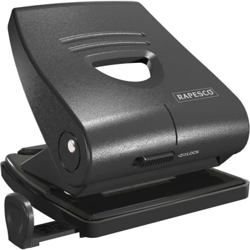 Mellomstor 2-hulls hullemaskin. Papirguide med flere format som enkelt stilles inn på ønsket hulling.