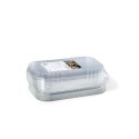 Aluminiumsformer med lokk, for oppbevaring og tilberedning av kjøtt, fisk og grønnsaker. Formen kan gå direkte fra fryst tilstand til ovn. Bruksområde aluminiumsform: Stekeovn, mikrobølgeovn, grill, kjøleskap og fryser. Anbefalt temperaturområde: -40 til +350grader. Anbefalt temperaturområde lokk: -40 til +70 grader. - Form: rektangulær - Materiale: aluminium - Antall rom: 1 - Mål (LxBxH): 265x162x47mm - Volum: 1442ml. - Materiale lokk: dPET
