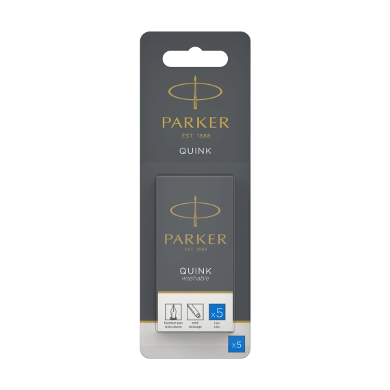 Parker Long Cartridges, washable blue ink Ink refill cartridges designed exclusively for PARKER fountain pens. Convenient long cartridge keeps ink contained for effortless refilling. Cartridge design allows you to easily use your fountain pen wherever you are.
