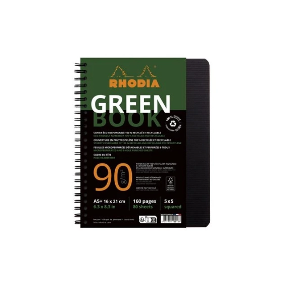 Stilig, funksjonell OG 100% resirkulert og gjenvinnbar. Velg en miljøansvarlig profesjonell notatbok med et omslag av resirkulert polypropylen, og ta notater på Clairefontaines bemerkelsesverdige 90 gsm resirkulert papir med overlegen opasitet og hvithet. Omslag i 100% resirkulert og gjenvinnbar polypropylen, 160 mikroperforerte og perforerte sider (A4+ 4 hull / A5+ 6 hull). Clairefontaine 90 gsm 100% resirkulert papir. Ingen de-inking eller klorbehandling. FSC resirkulert sertifisering. Merkevaren RHODIA har vært en garanti for kvalitet siden 1934. Vår arv og kunnskap om papirproduksjon gjenspeiles i våre kolleksjoner av elegant og funksjonell skrivemateriell, organisasjons- og oppbevaringsprodukter samt tilbehør - sanne tidløse must-haves.