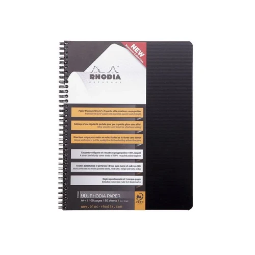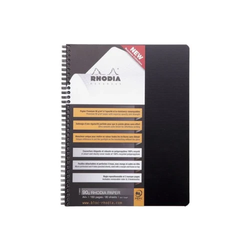 Struktur og kvalitet for effektive notater. RHODIA Active A4+ spiralbok kombinerer funksjonalitet med førsteklasses kvalitet. Med 160 rutede sider (5x5) av 90 gsm papir får du en silkemyk skriveopplevelse uten gjennomslag. Den slitesterke polypropylen-omslaget gir ekstra beskyttelse, og sidene er mikroperforerte med 4-hulls universalstansing for enkel arkivering. Med en flyttbar linjal og 6 nummererte bokmerker blir organisering av notatene dine en lek. Perfekt for kontorbruk, studier og møter. 160 rutede sider (5x5) i 90 gsm papir med silkemyk finish Slitesterkt omslag i 100 % resirkulert polypropylen Mikroperforerte sider med 4-hulls universalstansing Flyttbar linjal og 6 nummererte bokmerker for enkel organisering Spiralinnbinding for flat åpning og komfortabel skriving